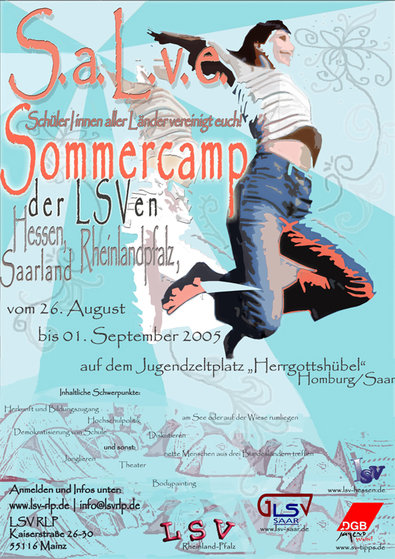 Das neunte Sommercamp der LSV unter dem Motto "S.a.L.v.e. - SchülerInnen aller Länder vereinigt euch!" fand im Jahre 2005 vom 26. August bis 1. September erneut auf dem "Herrgottshübel", einem idyllischen Zeltplatz in Homburg-Jägersburg, in Kooperation mit den LSVen Hessen und Saarland statt. Bilder vom Platz findet ihr hier.