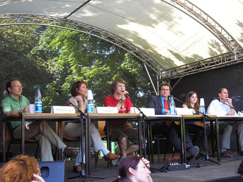 Die LSV war auf dem diesjährigen OpenOhr-Festival auf der Mainzer Zitadelle durch Pressereferent Felix Martens auf einer gut besuchten Podiumsveranstaltung zum Thema "Ware Bildung?" vertreten. Unter den DiskussionspartnerInnen u.a. Staatssekretärin Vera Reiß aus dem Bildungsministerium.
