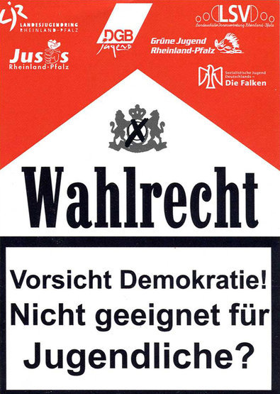 Am 26.01.2012 hieß es Flagge zeigen für ein Wahlalter ab 16 und mehr Teilhabe und Partizipation von jungen Menschen in Rheinland-Pfalz. Wir haben gemeinsam als DGB-Jugend, Jusos, Grüne Jugend, LandeschülerInnenvertretung, Falken und Landesjugendring einen Aktionstag in RLP veranstaltet. Wir sind mit SchülerInnen, Auszubildenden und vielen Menschen in die Diskussion kommen und haben gleichzeitig auch ein deutliches Zeichen für mehr Beteiligung junger Menschen gesetzt. Nur durch mehr öffentlichen Druck können wir dieses Ziel erreichen!