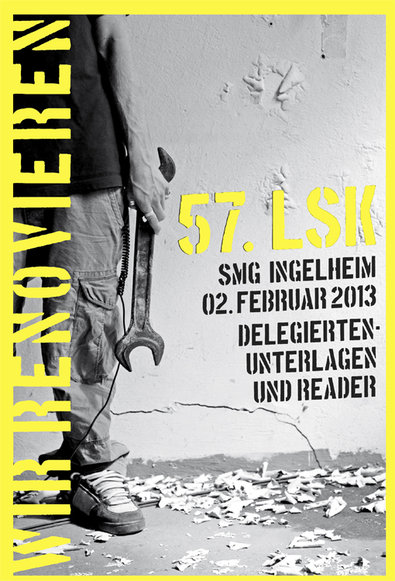 Den gewählten Delegierten der Kreis- und Stadt-SVen wird der Reader zur 57. LSK mit allen weiteren Infos wie Anträgen, Wegbeschreibung, Satzung und Geschäftsordnung etwa eine Woche vor der Konferenz per Post zugeschickt. Antragsschluss für die 57. LSK ist ebenfalls der 24.01.2013 (Eingang bei uns im Büro), damit Anträge vor der LSK an alle Delegierten verschickt werden können. Anträge, die in den LSK-Reader sollen, müssen bereits bis zum 20.01.2013 bei uns eingegangen sein.