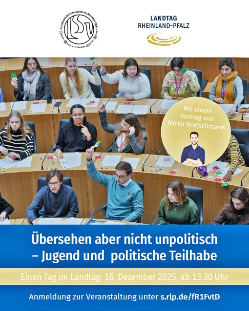 Der Präsident des Landtags Rheinland-Pfalz, Herr Hendrik Hering, und die Landesschüler*innenvertretung Rheinland-Pfalz (LSV RLP) laden dich herzlich zu einer besonderen Veranstaltung ein.