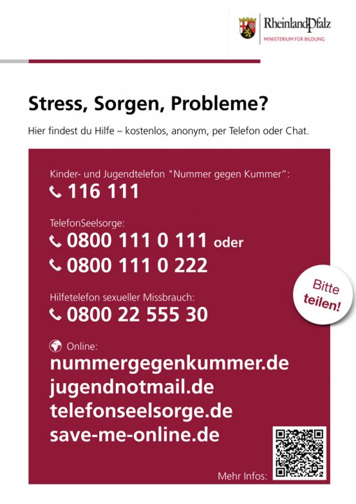 Verlässliche Informationen rund um das Corona-Virus im Kontext Schule erhaltet ihr auf den Seiten der Aufsichts- und Dienstleistungsdirektion, des Bildungsministeriums sowie der Landesregierung Rheinland-Pfalz.